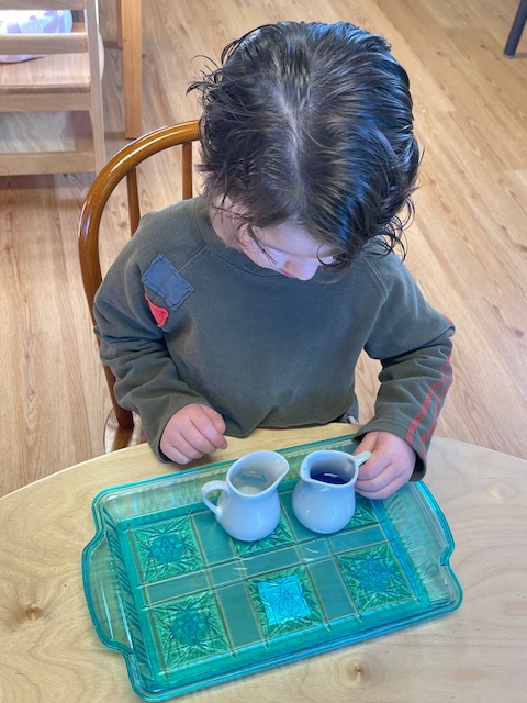 Incorporates exercises and activities that children observe in daily life. It consists of activities such as grace and courtesy, caring for self and the environment and everyday activities using real life objects in a child sized environment. These activities develop children’s independence, concentration, and fine motor skills. The Practical Life activities prepare the child for all other subject areas of the classroom.