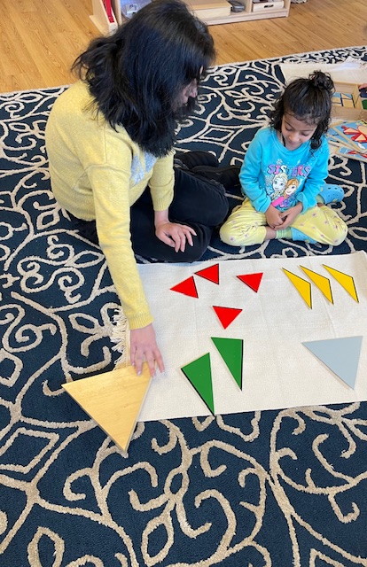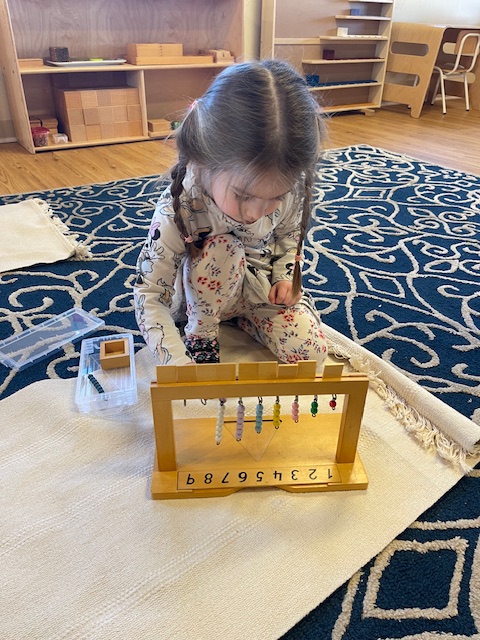 Is explored with the use of concrete learning materials. The sensorial area is the preparation for Mathematics. Hands-on materials are used such as number rods, sandpaper numbers, number boards, spindle box, number tiles, beads, and games. Each exercise builds upon another, and the child gradually moves to from concrete to abstract areas such as place value, addition, subtraction, multiplication, and fractions.